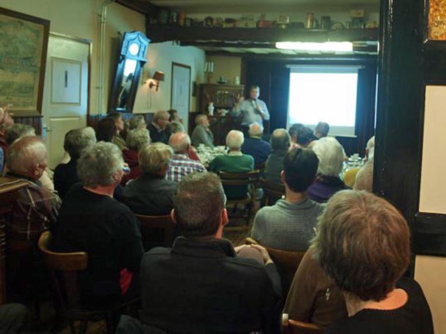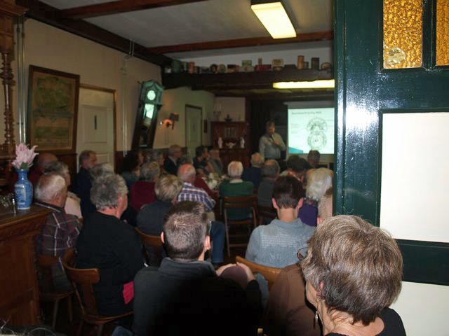 Op woensdag 12 november is Café Van der Wal volgestroomd voor de lezing "Het Paasloo Pantheon". De Vereniging Historie Weststellingwerf e.o. had voor deze avond Bert Meijerink uit Giethoorn uitgenodigd als spreker. Voorzitter Jan Zwolle opende de bijeenkomst met een uiteenzetting over de historie van deze historische vereniging. Bert Meijerink vertelde op vlotte wijze over de kunstbunker in Paasloo. Deze kent een aantal bijzonderheden. Hij is gedurende Tweede Wereldoorlog gebouwd, door Nederland met toestemming van de Duitsers. Het unieke is dat deze kunstbewaarplaats bovengronds gesitueerd is. Door de zware constructie met muren van 4,5 m dik en een dak dat op het hoogste punt 9 m dik is en mede door de ronde (d.w.z. 16-hoekige) centraalbouw is hij bombestendig. De dienstwoningen, ook in ronde vorm, zijn aan één zijde uitgebouwd.