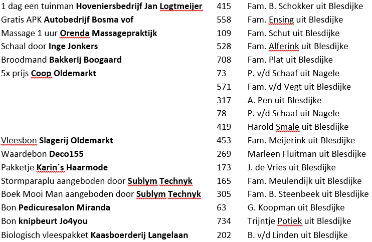Loterij Dorpsfeest 28 augustus 2016